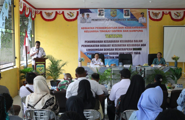 Mimika — Pemerintah Kabupaten Mimika melalui Distrik Iwaka menggelar kegiatan Pemberdayaan dan Kesejahteraan Keluarga Tingkat Distrik dan Kampung dengan tema “Penumbuhan Kesadaran Keluarga dalam Peningkatan Derajat Kesehatan Keluarga dan Lingkungan melalui Penerapan Perilaku Hidup Bersih dan Sehat (PHBS)”. Kegiatan ini berlangsung di Aula Kantor Distrik Iwaka, Rabu (5/11/2025).