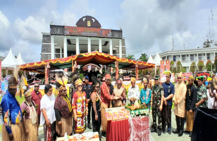 Gubernur Provinsi Papua Tengah, Meki Fritz Nawipa, memimpin upacara peringatan HUT ke-29 Kabupaten Mimika. Hadir dalam kesempatan tersebut, Bupati Mimika, Johannes Rettob, Wakil Bupati Mimika, Emanuel Kemong, Bupati Puncak, Elvis Tabuni, Forkopimda Mimika, serta tamu undangan lainnya.