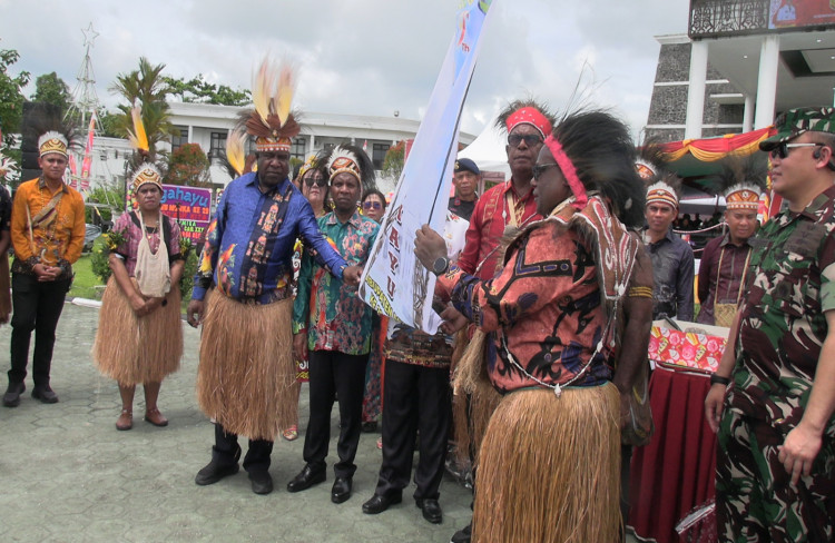Dalam sambutannya, Bupati Mimika menyampaikan ucapan terima kasih kepada seluruh masyarakat yang sudah hadir. Hari ini kita hadir dengan tampilan pakaian dari berbagai suku bangsa.