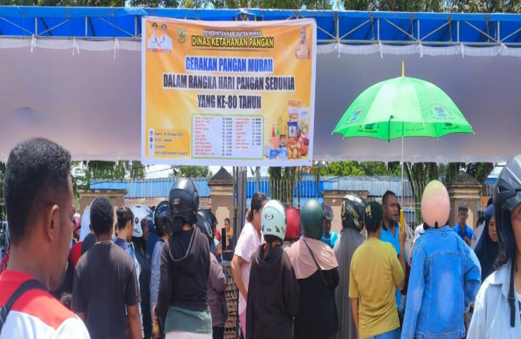 MIMIKA – Dalam rangka memperingati Hari Pangan Sedunia ke-80 Tahun 2025, Dinas Ketahanan Pangan (DKP) Kabupaten Mimika, Provinsi Papua Tengah, menggelar Gerakan Pangan Murah (GPM) yang berlangsung di halaman Gedung Eme Neme Yauware, Timika, Kamis (16/10/2025).